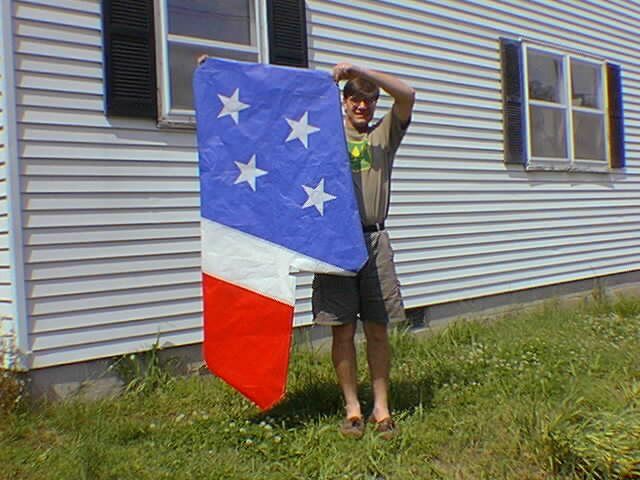 The plane that I have gotten the most comments about is the one I am flying this year as a trainer. It has a very patriotic sail pattern following several similar sails with red, white and blue patterns.
