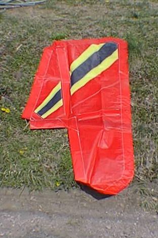 Sport I ,,,,,,,,,,,sail is grey with red, orange and neon yellow trim, tail parts are all double surface and have been assembled for fit, never flown, your choice of long or short ailerons, some new short tube parts are required to properly stiffen the extra surface, these are included in the price, shown is a picture of the rudder 1650