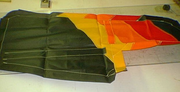 MX Super ,,,,,,,,,,sail is all custom for building an MX Super, the aerobatic plane offerred one year, 1984 by Quicksilver, sail is gold with red and orange trim stripes in wing and rudder, 1500